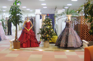 東北一の面積を誇る広い店舗に並べられた色とりどりのウェディングドレス。毎シーズン100着を超える新作ドレスが花嫁様を華やかに飾ります。結婚を意識し始めたら、まずは遊びにいらして下さい。 |
