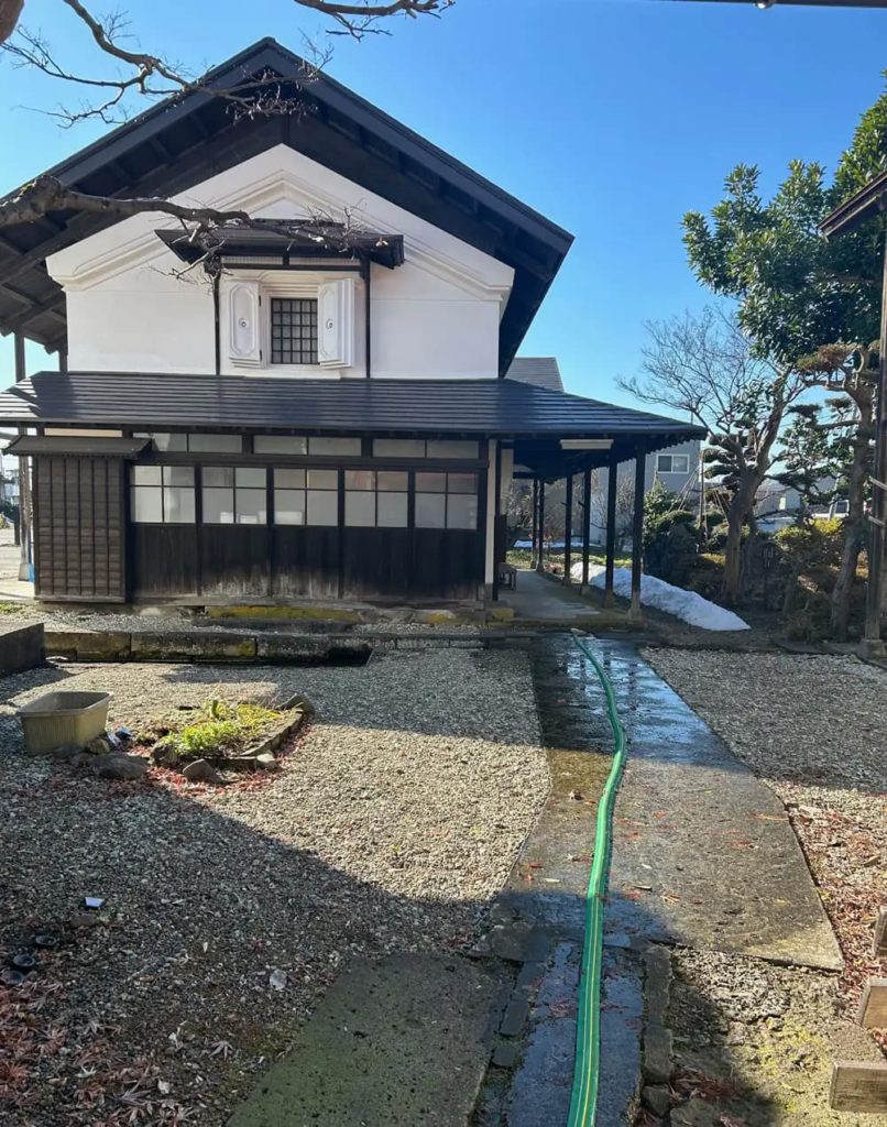 この緑色のホースは、雪を消すためのもの。
