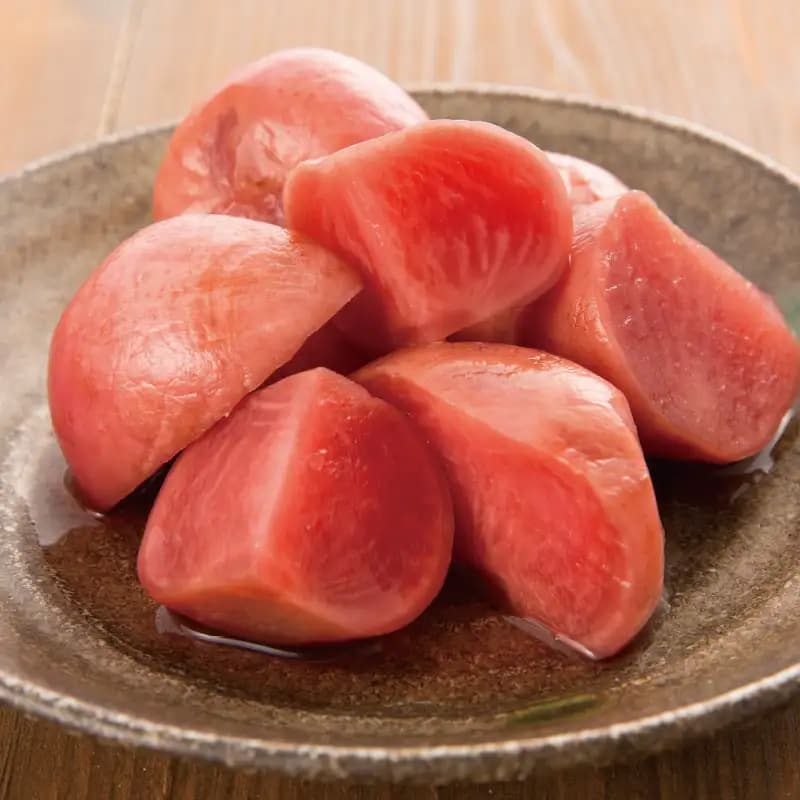 現在、店舗にも試食をご準備しています「赤かぶ漬」